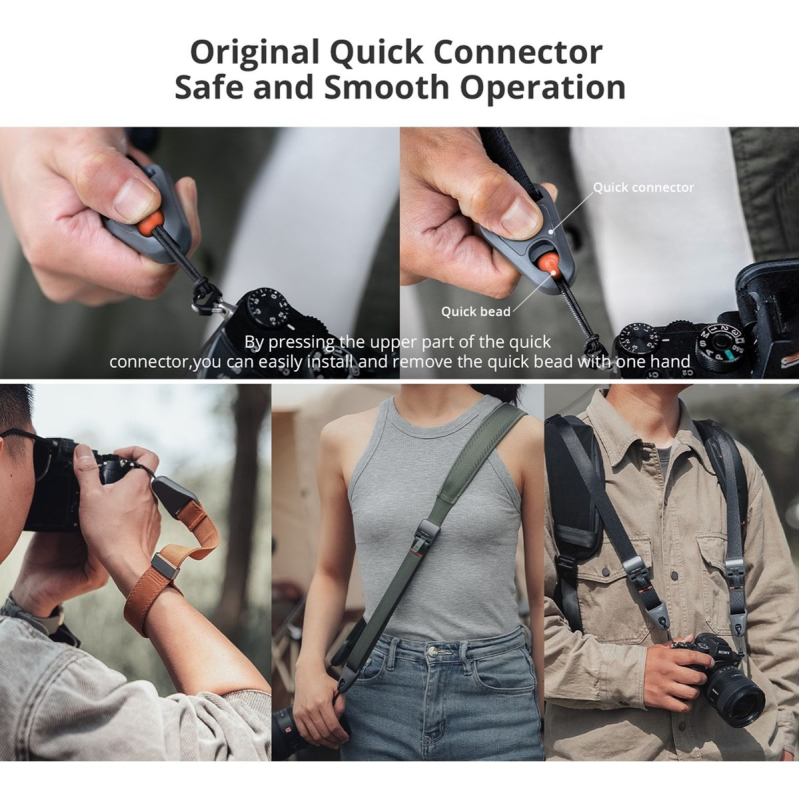 - Eenvoudige Bevestiging: Met een snelkoppeling en een universele bevestigingsfunctie past deze riem op de meeste camera's en statieven.
