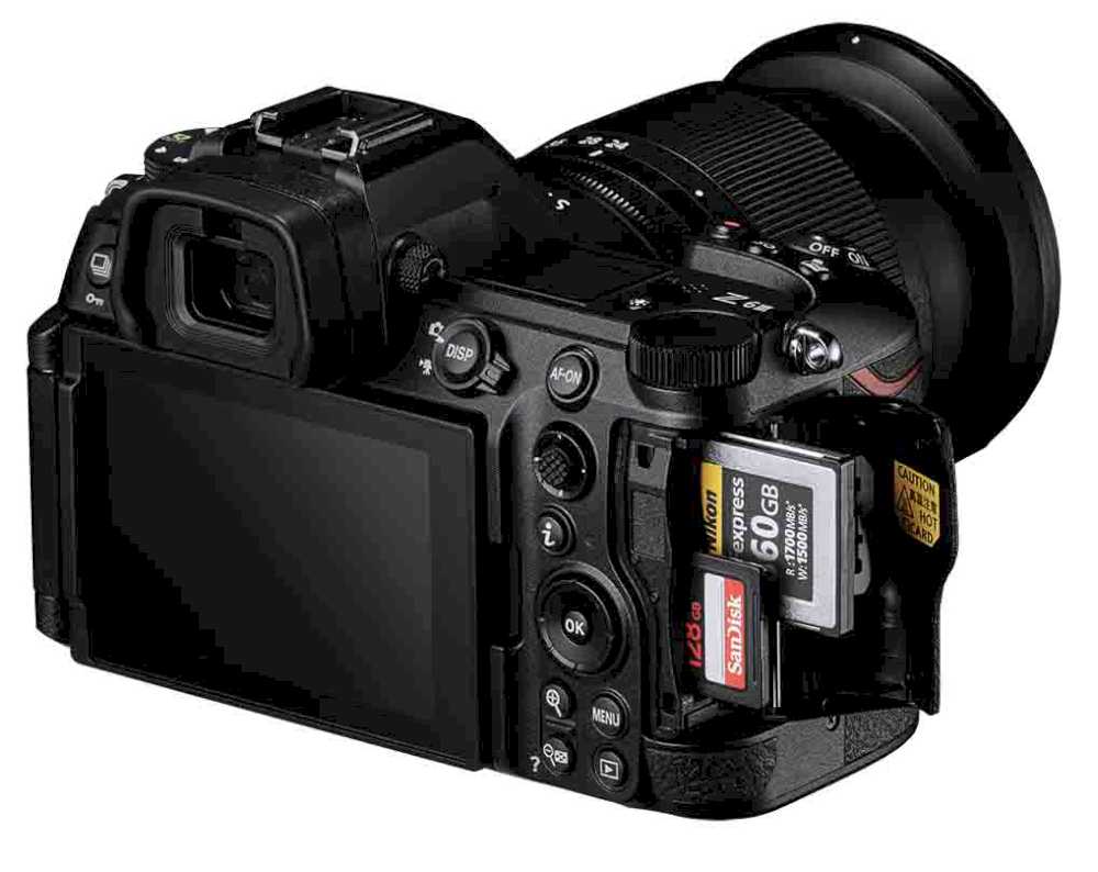 - Twee kaartsleuven: één sleuf ondersteunt CFexpress Type B-kaarten of XQD-kaarten en de andere sleuf ondersteunt UHS-II SD-kaarten.