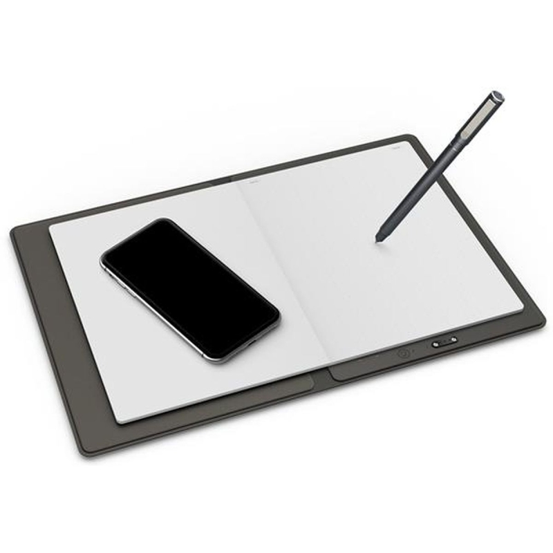 De stijlvolle en lichtgewicht Note Plus heeft afmetingen van ca 24,5 cm bij 17,6 cm. Door simpelweg de Note Plus te openen gaat hij aan. Wanneer hij volledig is opgeladen kun je hem 16 uur lang non-stop gebruiken. Door de Note Plus weer te sluiten gaat hij automatisch op stand-by modus. Hij kan meer dan 50 dagen stand-by staan voordat je hem weer moet opladen met de bijgeleverde oplaadkabel. De Note Plus wordt geleverd met een 50-vel notitieblokje met de afmetingen van 148 mm x 210mm. Heb je dit notitieblokje vol geschreven, dan kun je hem eenvoudig vervangen met een algemene A5-formaat notitieblok. De Note Plus heeft een ingebouwde opslagcapaciteit om tot 50 pagina’s aan offline informatie op te slaan. Op deze manier kun je de Note Plus ook gebruiken zonder smartphone. Zo kun je elk moment gemakkelijk en snel je ideeën vastleggen.