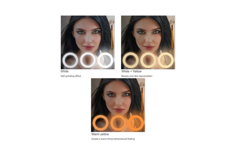 De ringlamp beschikt over 120 kleine LED-lampjes, die zich onder een diffuser bevinden. Gezamenlijk genereren deze een vermogen van 10 Watt. De kleurtemperatuur van de LED-lamp kunt u zelf instellen van 3200K (warm geel licht) tot 5600K (daglicht), en alles dat daar tussenin ligt. Bovendien kunt u het vermogen van de lamp ook zelf bepalen. U ziet direct het effect van het LED-licht in uw opname.
