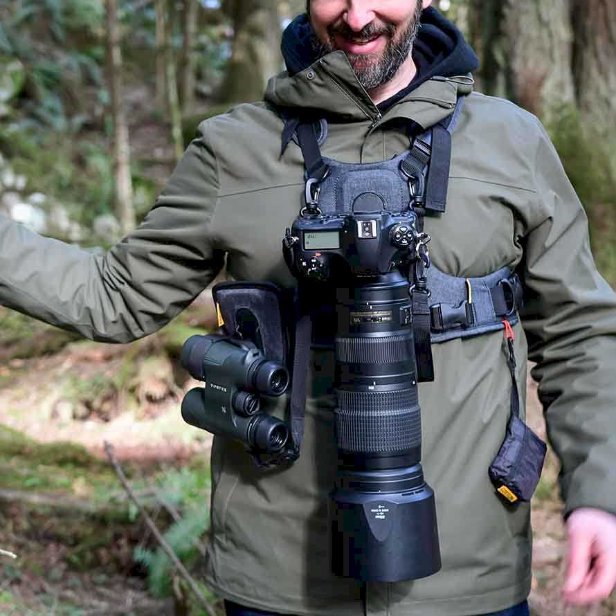 Cotton Carrier CCS G3 Harnas voor 1 Camera en een verrekijker en ervaar het gemak en de vrijheid van hands-free fotografie! Perfect voor zowel de professionele fotograaf als de enthousiaste natuurliefhebber.